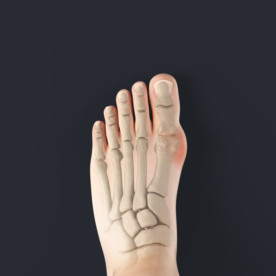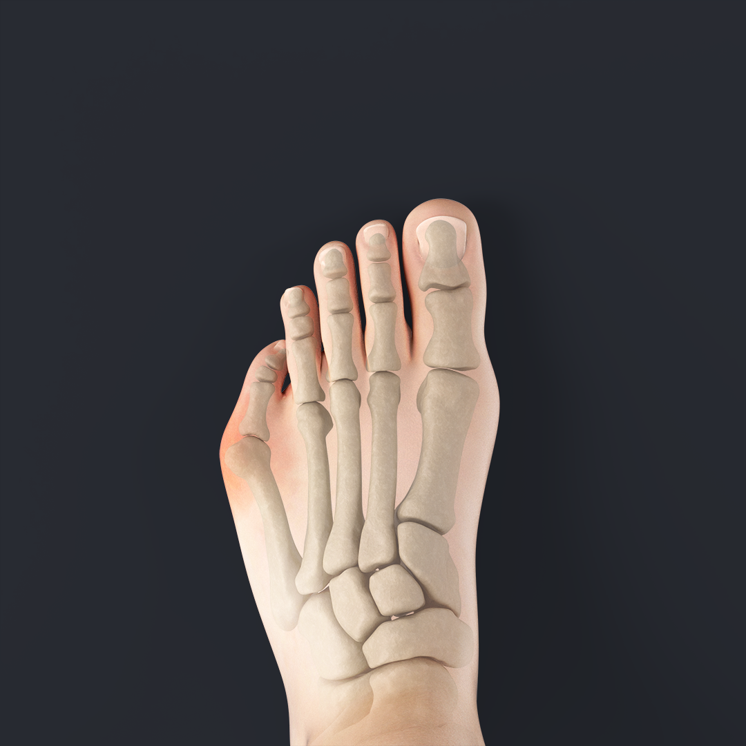 Este proyecto presenta tres patologías frecuentes del antepié —juanete de sastre, dedo en martillo y artrosis del dedo gordo— mediante una secuencia sintética de renders.