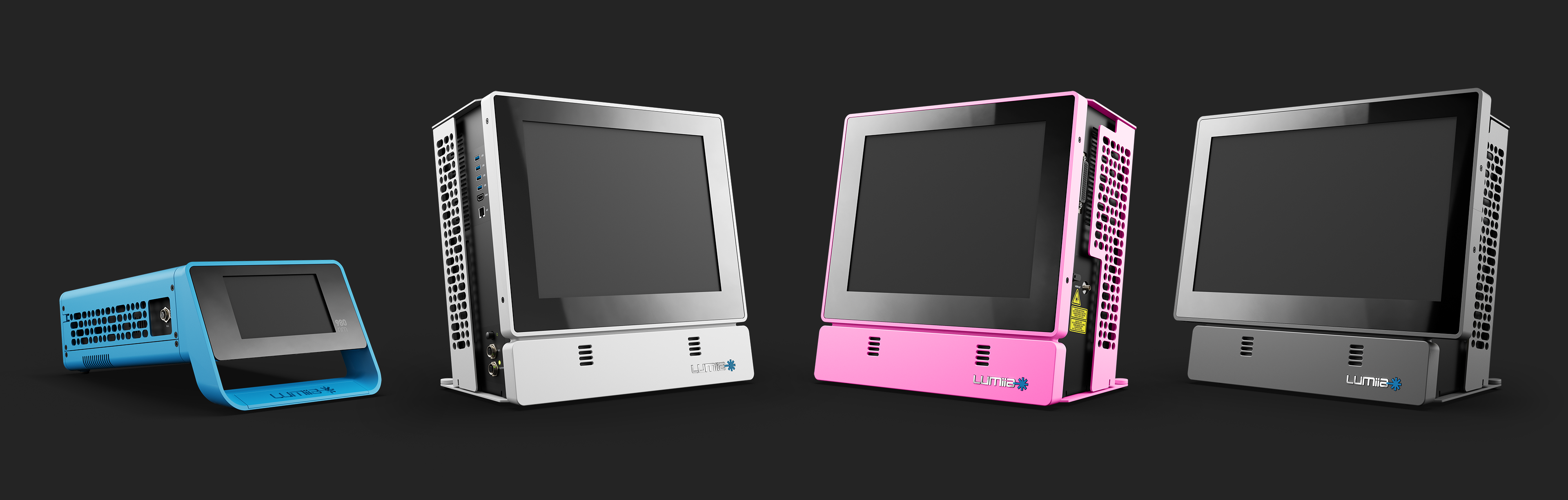 Color variations adapt to different configurations while preserving a consistent visual identity. Top lighting emphasizes the touchscreen interface and the integration of technical ports and ventilation details. The render presents a balanced technological presence, where hardware solidity and visual organization coexist in a precise and reliable system.