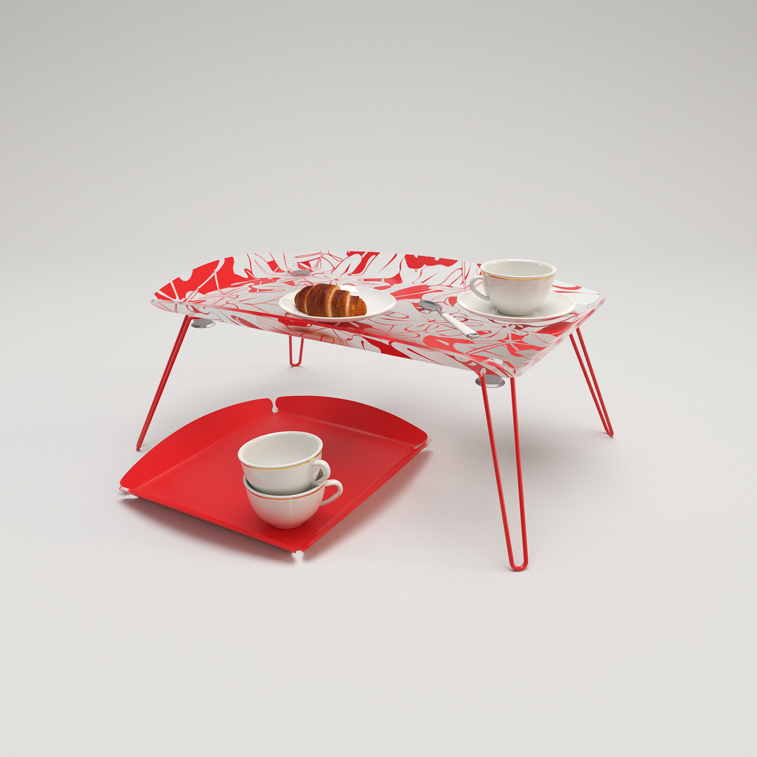 This visualization highlights the technical morphology of a tray set made of high-resistance polymer and metal rod supports.